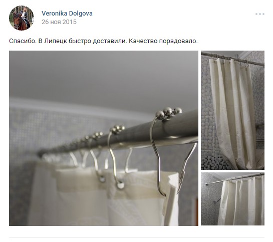 Доставка до Томска тоже сработала быстро: в четверг оформила заказ, уже в понедельник у нас ванной висит новенький блестящий (во всех смыслах) карниз.