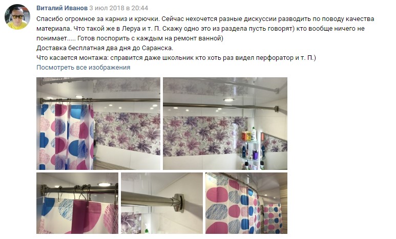 Спасибо огромное за карниз и крючки. Сейчас нехочется разные дискуссии разводить по поводу качества материала. Что такой же в Леруа и т. П. Скажу одно это из раздела пусть говорят) кто вообще ничего не понимает..... Готов поспорить с каждым на ремонт ванной)